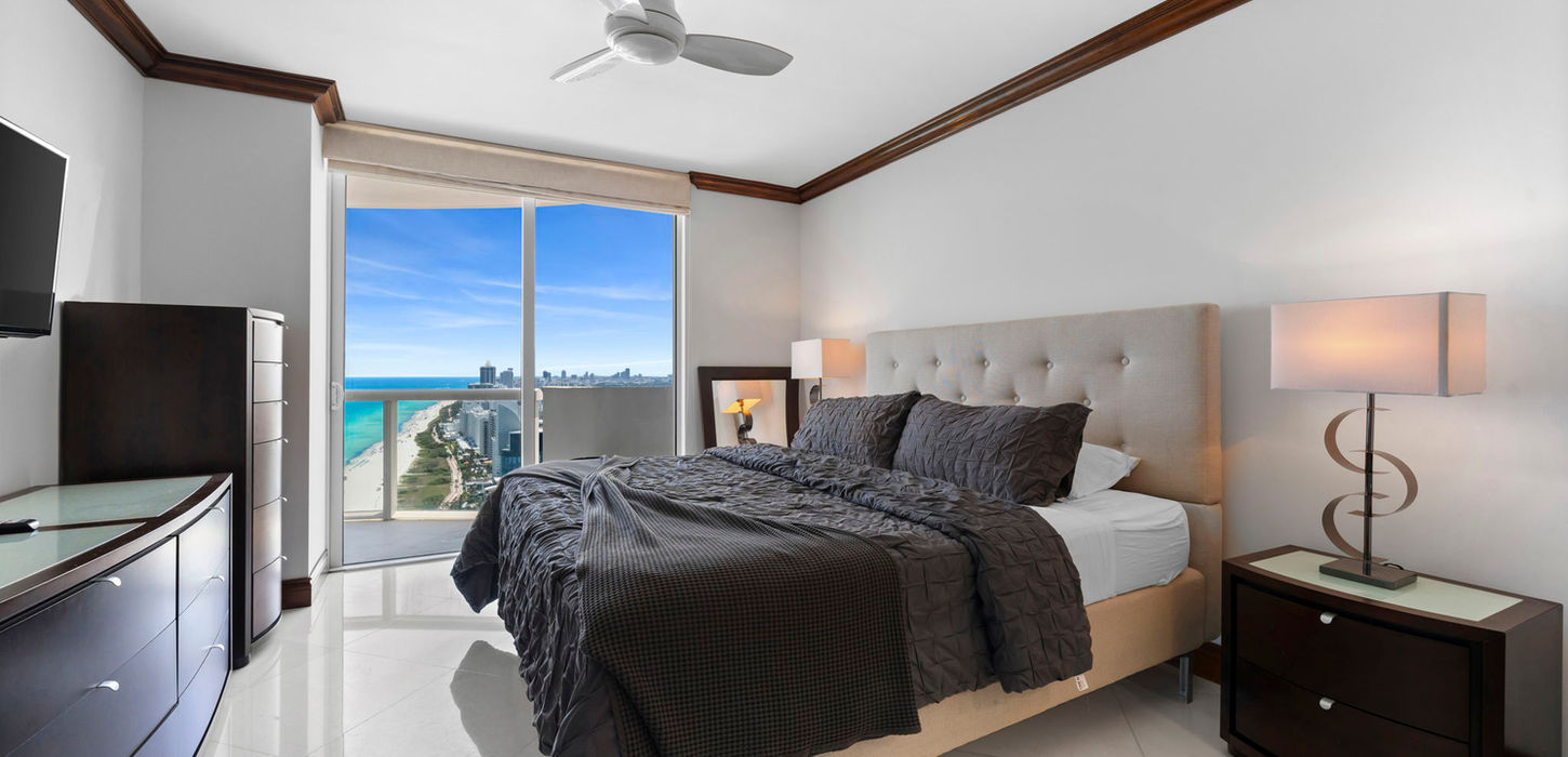 Discover unparalleled luxury at this exquisite 39th-floor apartment in one of Miami Beach's most prestigious locations. Enjoy breathtaking 180-degree vistas of the azure ocean and the vibrant downtown Miami skyline from every angle. With abundant natural light, savor both sunrise and sunset views. This unit boasts a lavish primary bedroom with ensuite bath and walk-in closet, along with a guest bedroom featuring a convenient Murphy bed. Building amenities include a tennis court and pool deck, promising a lifestyle of leisure and sophistication.