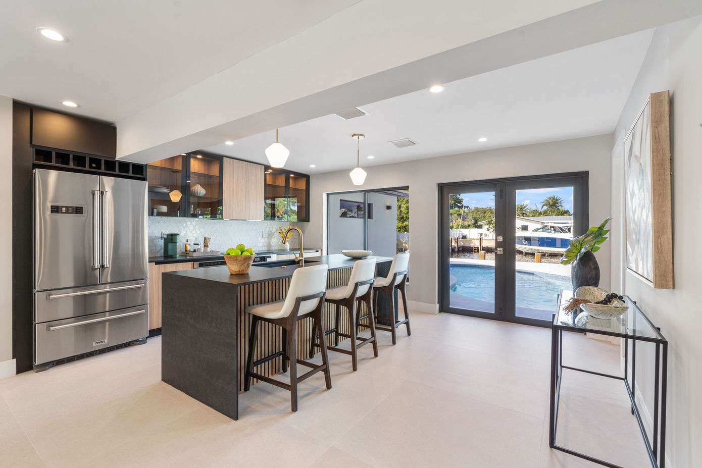 Unveiling a 2023 masterpiece! This fully reconstructed custom home, with 120 feet of waterfront charm, strategically graces the end of a private canal, off the intracoastal waterway. A swift boat ride to the open ocean awaits from this 4-bed, 3-bath sanctuary. Revel in a split layout, chef's kitchen, and a private master suite offering scenic water views. Outdoor paradise includes a heated pool, hot tub, and a natural gas barbecue—redefining coastal living with opulence and modern amenities.
